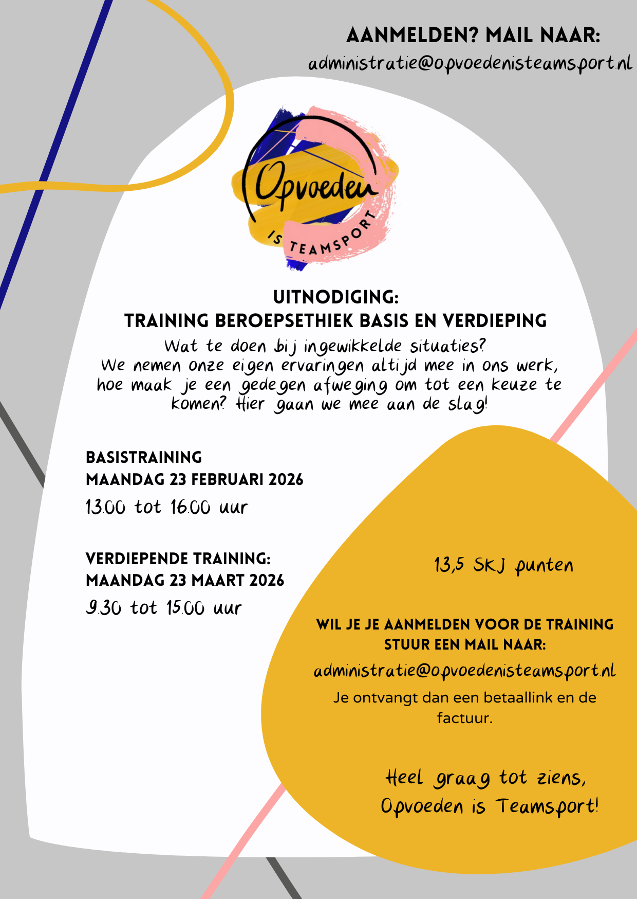 Ja, de training is in-company mogelijk. Stuur een mail naar info@opvoedenisteamsport.nl dan nemen we zo snel mogelijk contact op.
